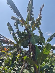 In addition to crop production, Byamugisha’s family maintains a diverse array of livestock and a few chickens. The focus here lies in utilising the animals’ manure to sustain soil fertility in his garden. By leveraging the organic benefits of animal manure, he ensures a sustainable method of production while maintaining the health of his perennial enterprises.