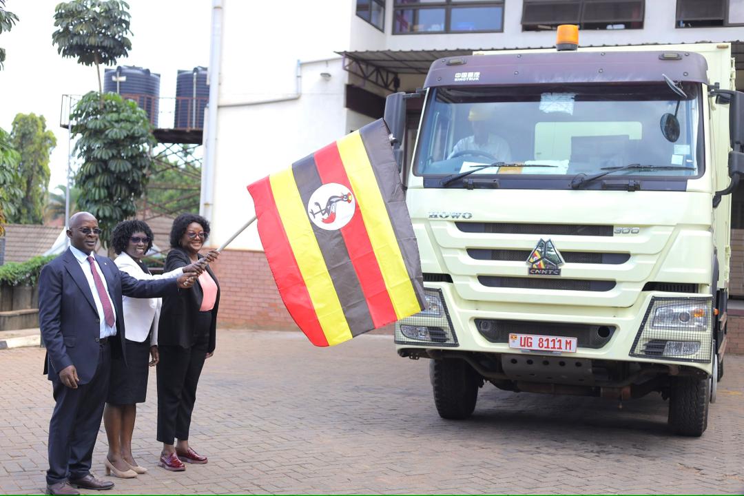 While at the Joint Medical stores, flagging off commodities for reproductive health and circumcision kits destined to Mbale hospital, among others, to support the country in curbing the spread of HIV/AIDS among others.