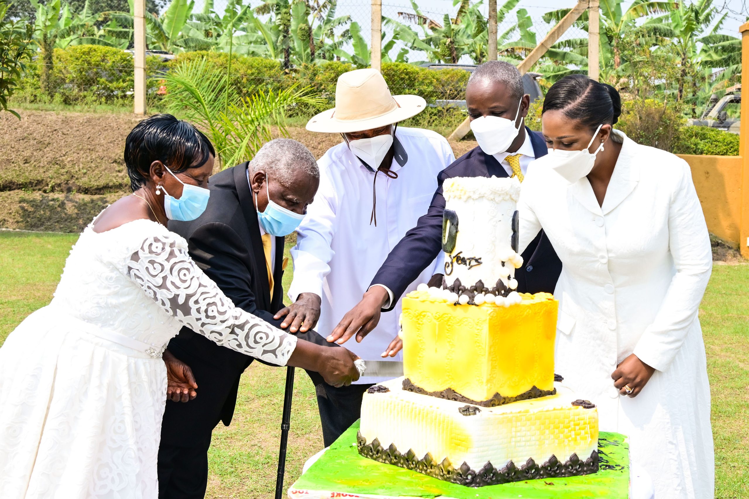 MITOOMA — President Yoweri Kaguta Museveni on Sunday joined the family of Deputy Speaker of Parliament Thomas Tayebwa— celebrating with them Mzee Daudi Bangirana’s 80th birthday and 48 years of marriage.